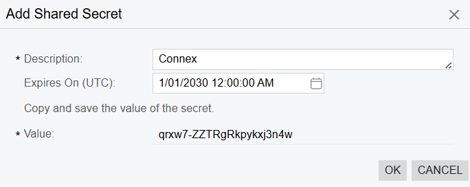 Note: Select a long expiry time to avoid having to re-authorize the app with new credentials in short periods of time.