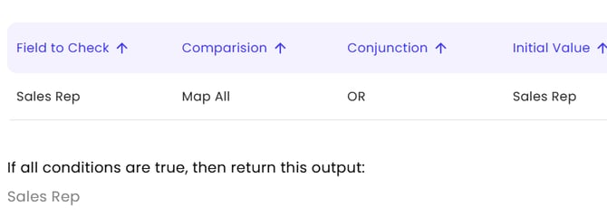 - Conditions are sales rep, map all and enter sales rep.