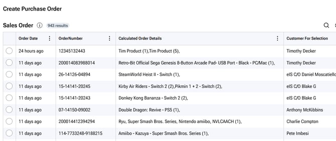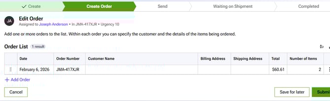 Here is a list of orders: