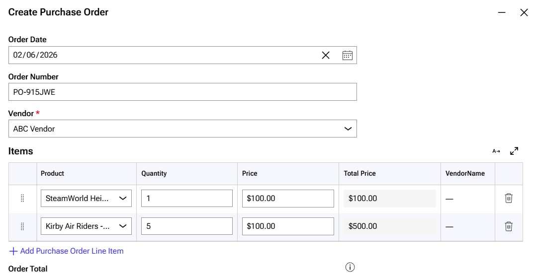 Here is a purchase order: